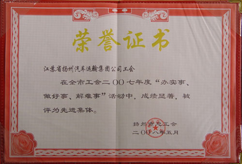 2007年度揚州市工會“辦實事、做好事、解難事”活動先進(jìn)集體