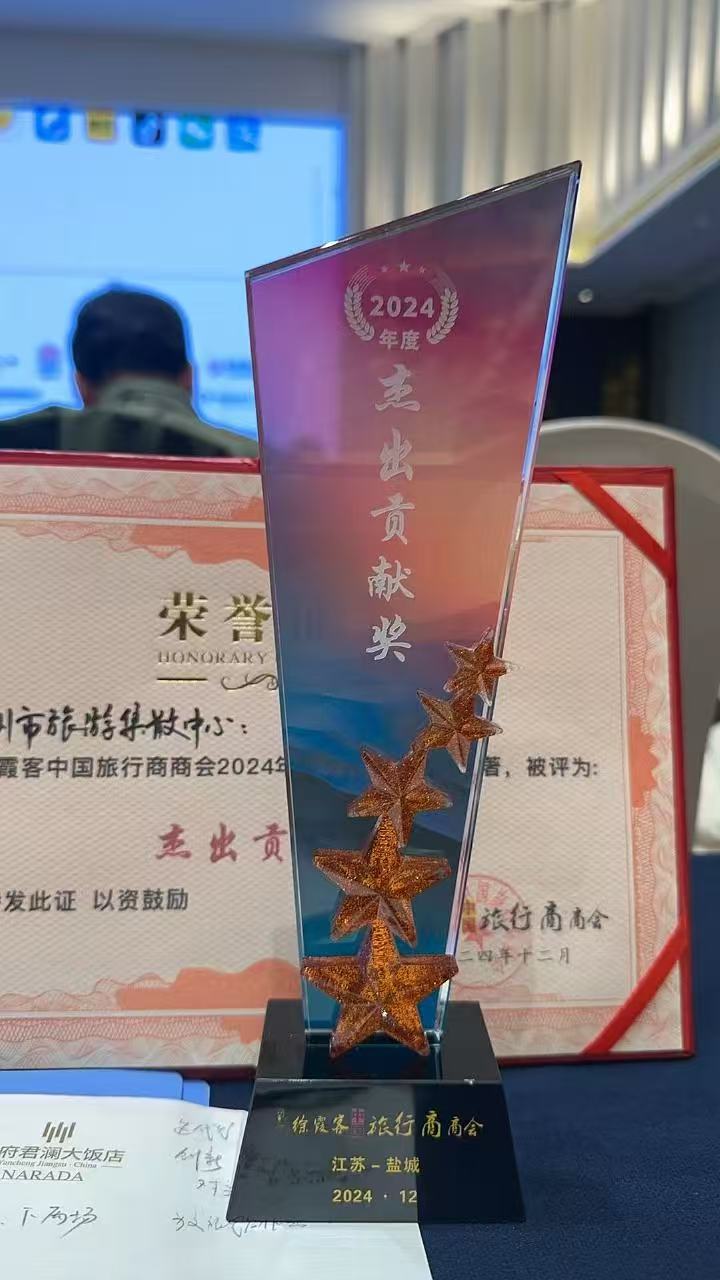 近日,揚(yáng)州市旅游集散中心被徐霞客中國旅行商商會(huì)授予“2024年度杰出貢獻(xiàn)獎(jiǎng)”三等獎(jiǎng)。